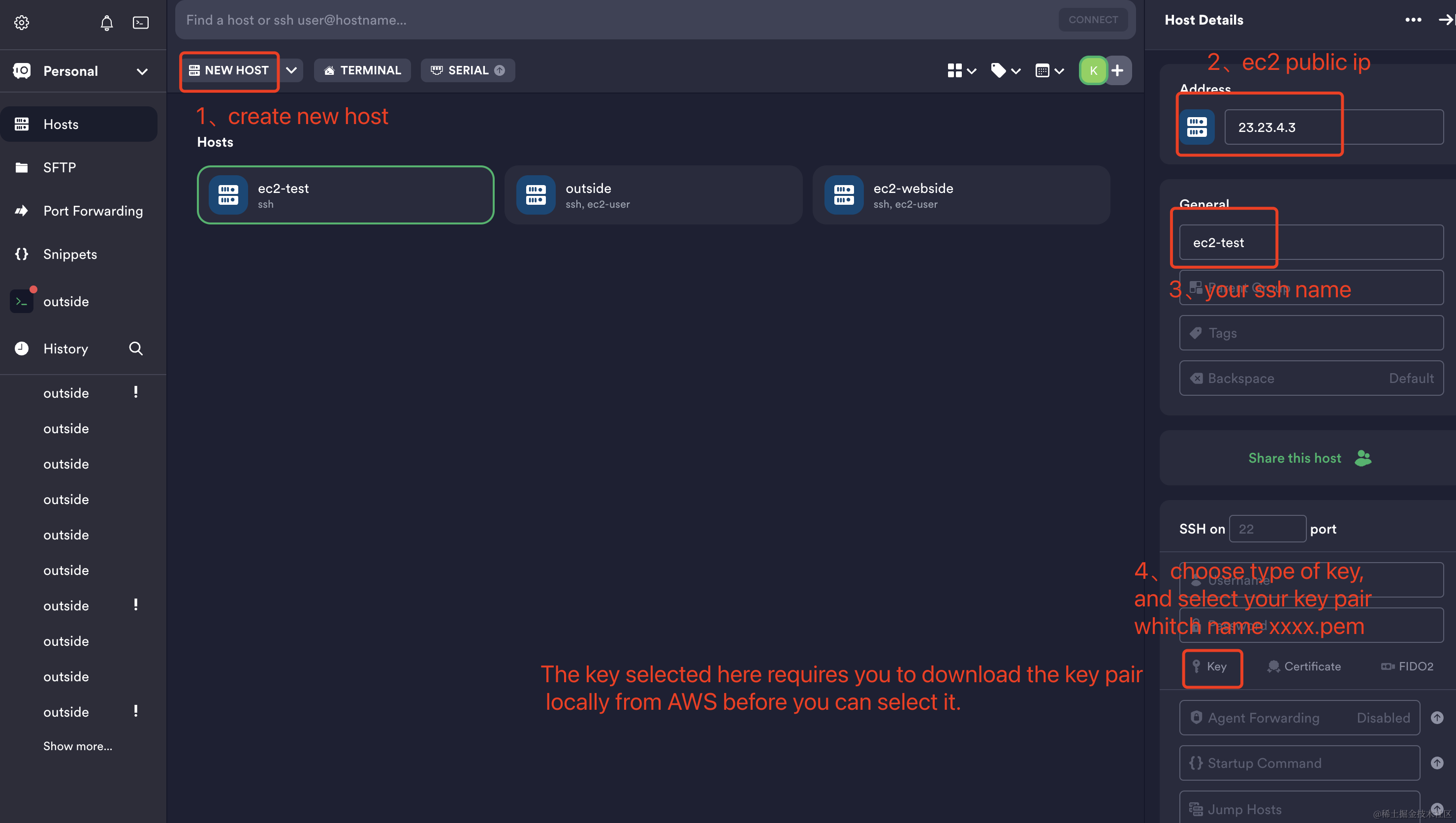 1、 create ssh host